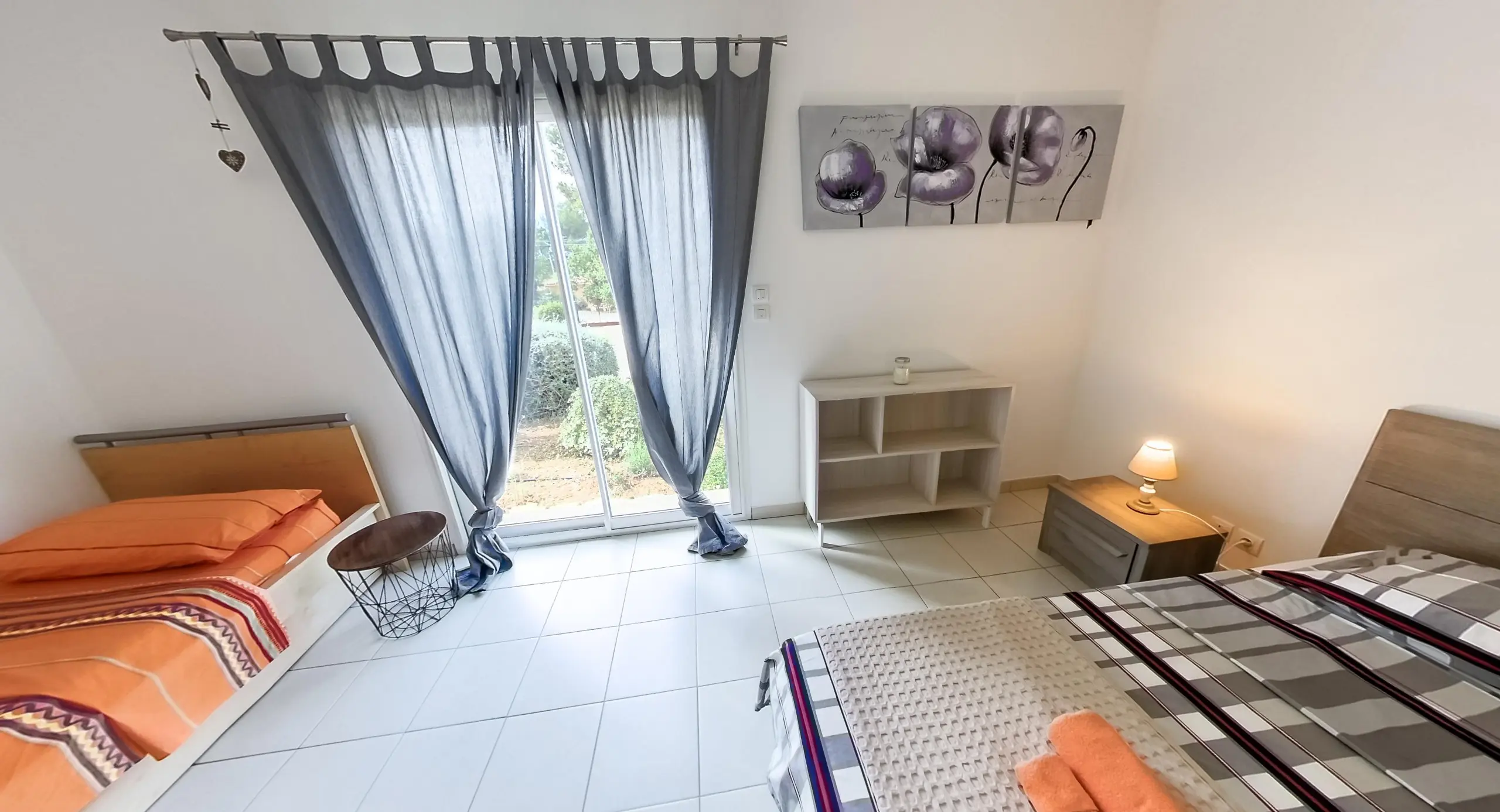 Cuisine neuve, moderne entièrement équipée, plaque induction, four, micro-onde, lave-vaisselle, lave-linge. Matérielle de repassage. Un chambre avec un grand lit King size, plus 2 lits simples. Deuxième chambre avec un lit king size. Canapé lit convertible 2 places dans la salle. Salle de bain avec douche à l’italienne. Sèche cheveux. Savon douche. Toutes pièces sont climatisées ou chauffage. Terrasse avec table et chaises. Ici on apprécie le calme avec son jardin arboré de 4000 m2 entièrement clôturé, situé sur la commune de Flayosc, petit village provençal, à 3 km du domaine de viticole de Berne. A proximité à 1,5 km le village de Flayosc ou vous trouverez tous commerces et restaurants.